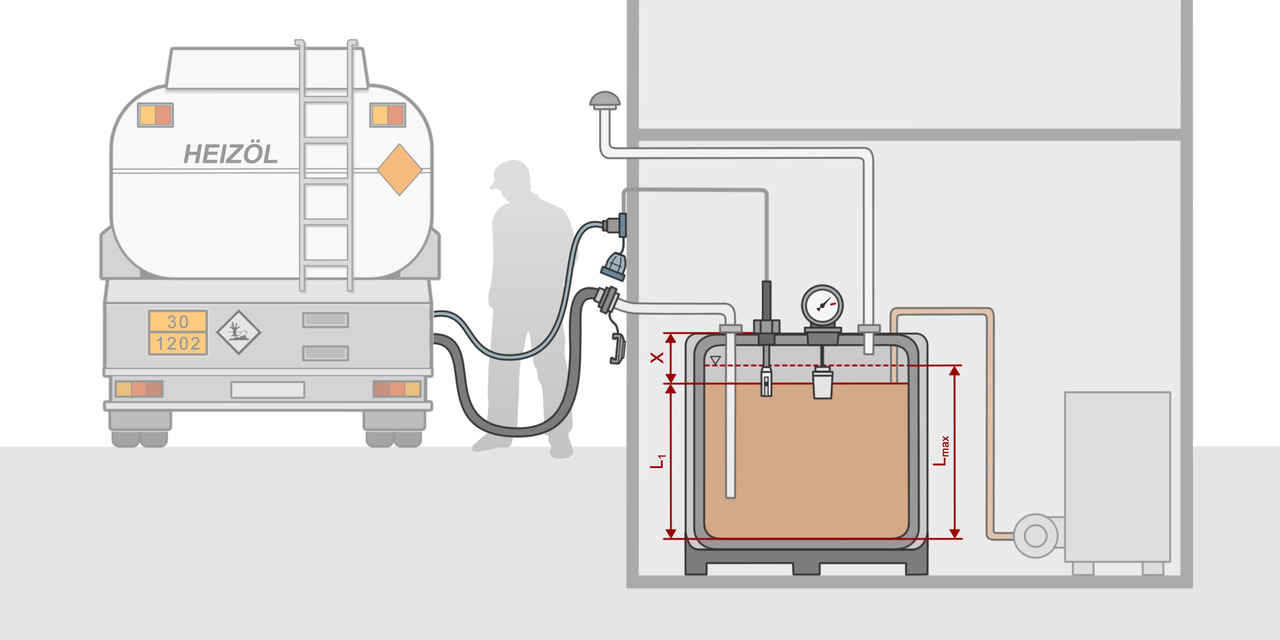 als Sicherheitseinrichtung gegen Überfüllen für oberirdische, im Innenbereich aufgestellte, drucklose Tanks