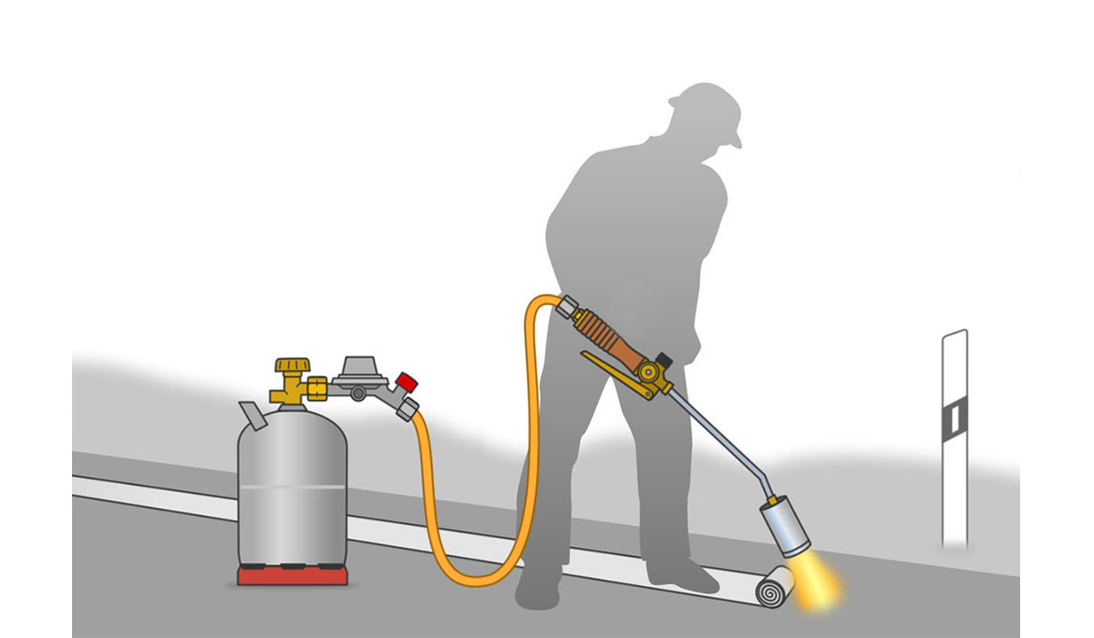 Das Brenner-Set wird für Anwärm- und Abbrennarbeiten beim Straßenbau verwendet, z. B. um Markierungen auf der Fahrbahn anzubringen.