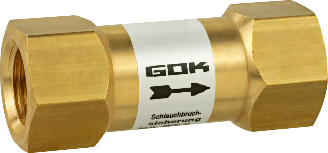 • verhindert Gasaustritt bei Beschädigung bzw. Lösen der Schlauchleitung und schließt den Gasdurchgang ab, sobald der Nenndurchfluss um 10 % überschritten wird