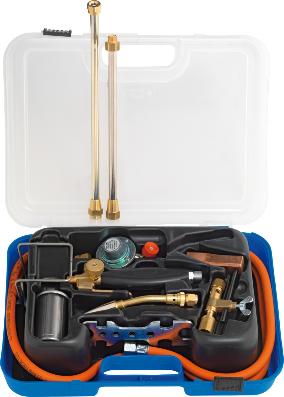 das ideale Set für den Heimwerker, für viele Anwendungen, z. B. Hart- und Weichlöten, Anwärmen, Abbrennen, Schmelzen, Auftauen und das Bearbeiten thermoplastischer Kunststoffe
