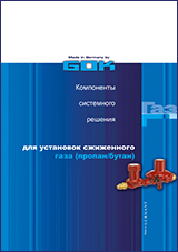The product selection for Russian market shows all components required for a safe installation of LPG tank and cylinder plants.