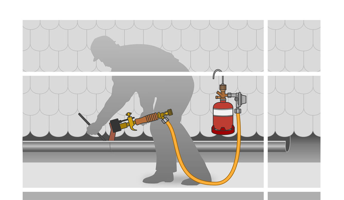 On roofs at airy heights, it is of course difficult to position or transport gas cylinders of 5, 11 or even 33 kgs. With the handy 425 gram mini cylinder, the corresponding soft soldering sets and components, even these jobs are no problem.