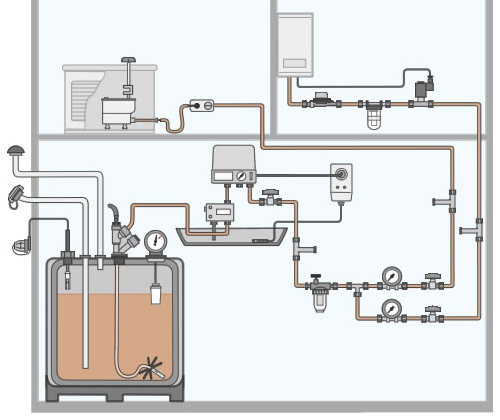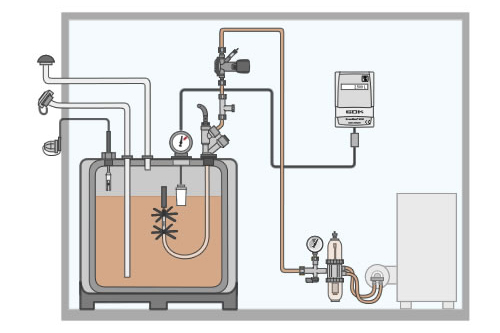 These installations are subject to the requirements for an oil firing installation in the commercial business and in the public sector according to Section 62, Paragraph 2 WHG (in Germany). The fuel oil can only be fed to the consumer equipment via pressure lines by means of an oil feed pump.